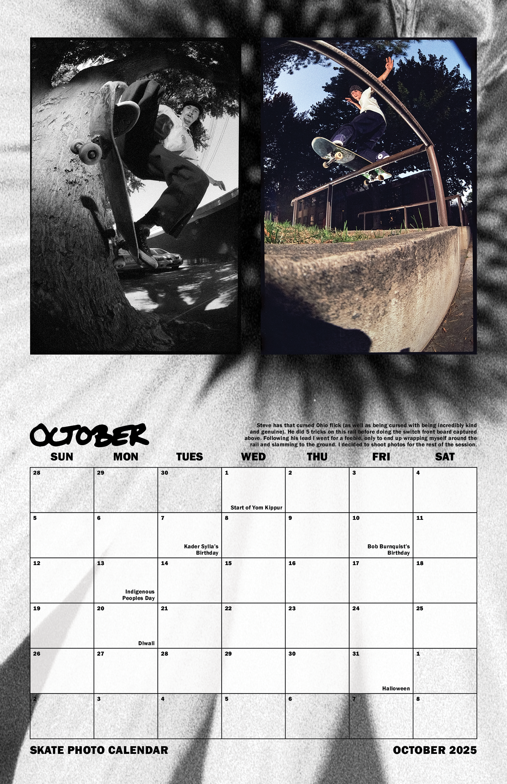 2025-Calendar Skate Photo Calendar 2025 Photography by: Leo WilsonGraphic Design by: Robert Scowcroft Return to Skate Photography